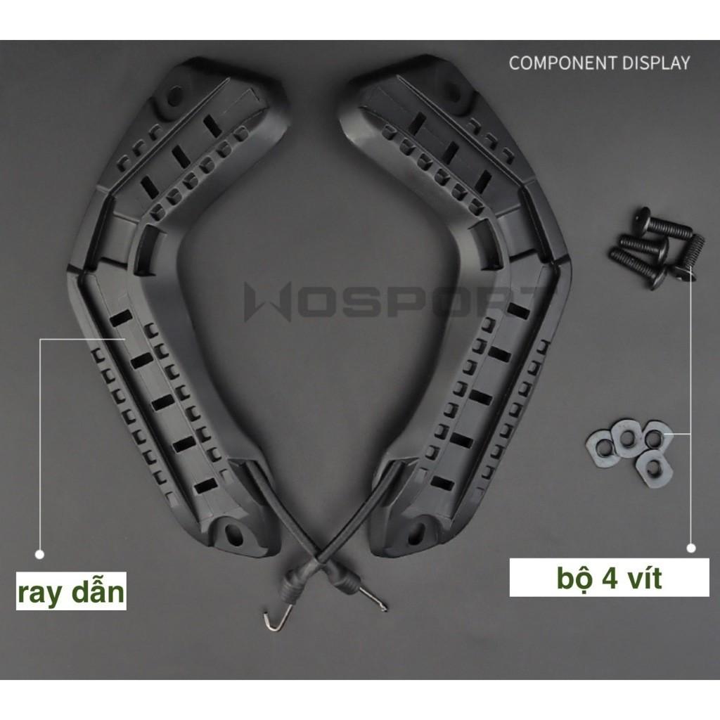Bộ ray thay thế cho mũ bảo hiểm chiến thuật Hàng chính hãng Wosport Dùng thay thế cho mũ bảo hiểm chiến thuật Bộ gồm 2 ray , vít, dây ràng Chất liệu abs chắc chắn