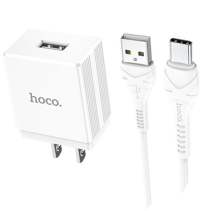 Bộ sạc 2.4A Hoco DC13 chuôi dẹt 1 cổng Usb kèm dây sạc Type-C dài 1M cho Android Hoco DC13 có chân cắm US dòng sạc 2.4A và 1 cổng USB đạt tiêu