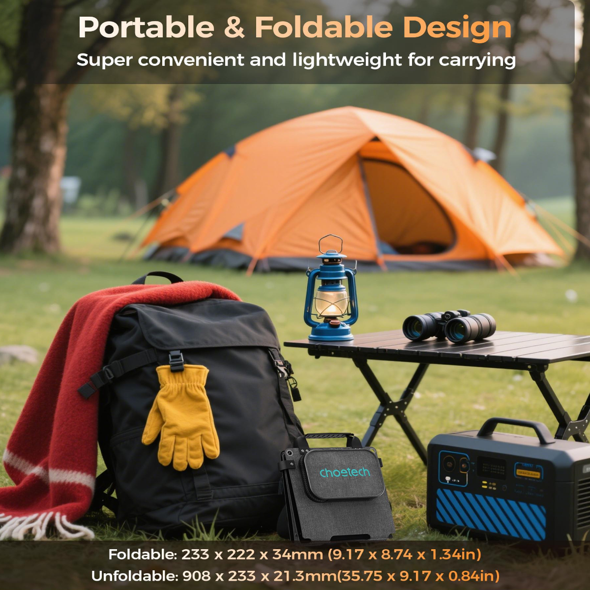 Mua tại TiktokGiới thiệu Bộ sạc năng lượng mặt trời di động Choetech SC005-V5 công suất 28w có thể gấp gọn (Hàng chính hãng)