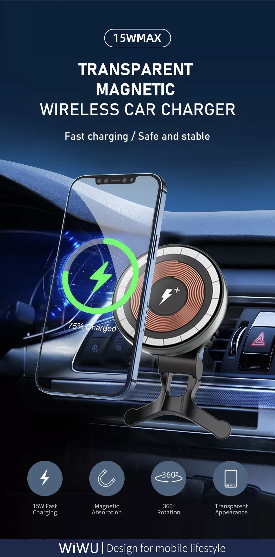 🩸WIWU CH-309 TRANSPARENT MAGNETIC WIRELESS CHARGING CAR MOUNT🩸 #wiwu #wiwumiddleeast