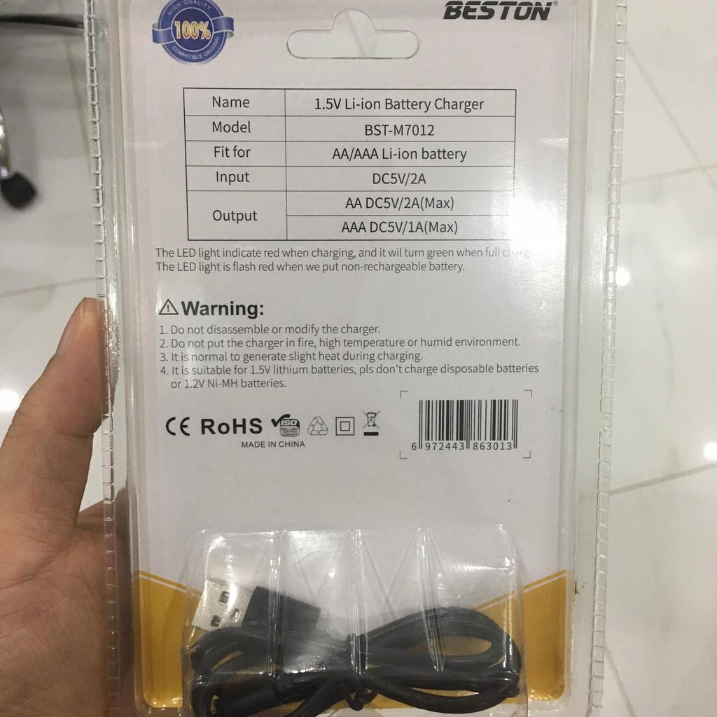 - Bộ sạc pin tiểu 8 cổng 1.5V, pin sạc AA AAA BESTON 1.5V chính hãng pin lithium hàng cao cấp Đây là loại pin sạc thế hệ thứ 2 của hãng Beston, cũng là thế hệ mới nhất. Pin sạc AA / AAA 1.5V có điện áp ổn định 1.5V trong suốt chu kì sả giúp khắc phục hoàn toàn trường hợp không tương thích của thiết bị khi sử dụng pin sạc 1,2V, cũng như pin dùng một lần khi xả điện bị giảm áp.