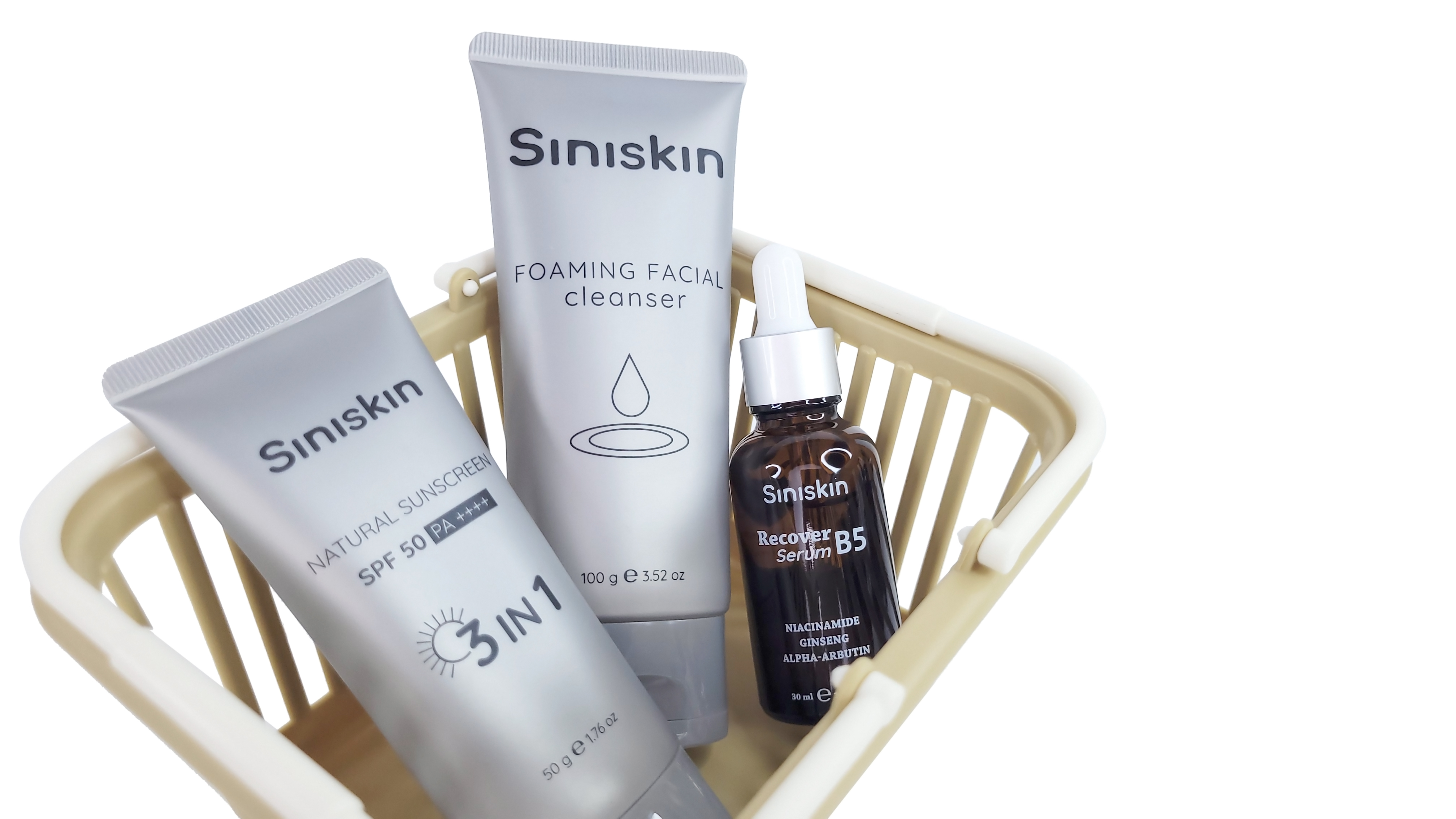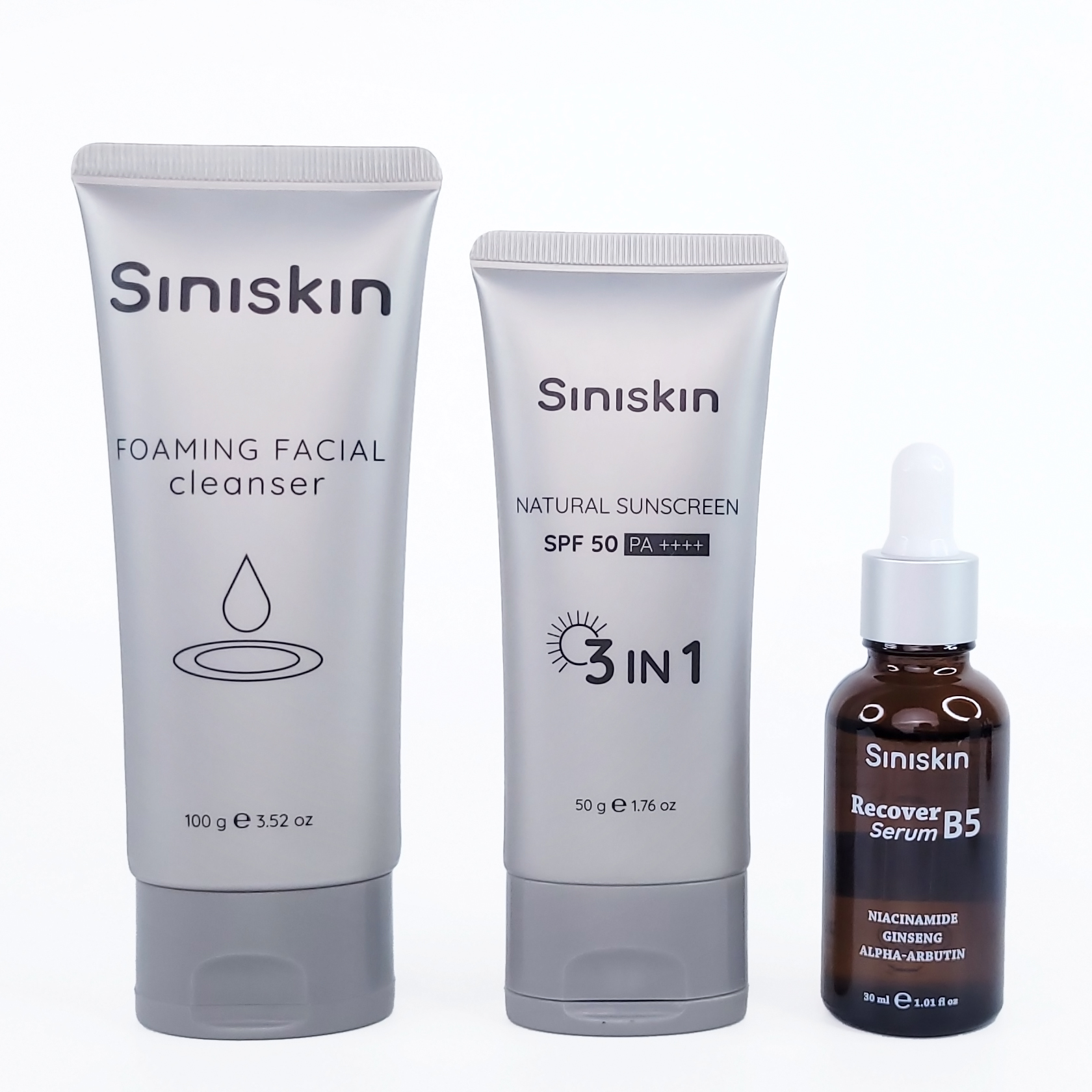 ✨Bộ sản phẩm chăm sóc da Siniskin "Serum phục hồi da Recover B5, Kem Chống Nắng nâng tone tuje nhiên, Sữa Rửa Mặt tạo bọt dịu nhẹ