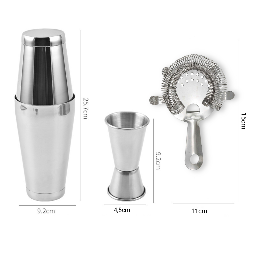 Mua tại TiktokBỘ SÉT 4 DỤNG CỤ PHA CHẾ sản phẩm có chất lượng inox cao cấp rất tiện dụng cho việc pha chế cocktail cho nhà hàng khách sạn quầy bar bộ sản phẩm gồm có 04 dụng pha chế cocktail bằng thép không gỉ cao cấp Package List: 1 Double-Sided Measuring Jigger ( ly đong 2 đầu 10-25ml ) 1 Hawthorne Strainer ( cây chặn đá ) 2 * Boston Shaker Cup > ( cốc lắc 2 mảnh (2 đáy ) 28oz/18oz )