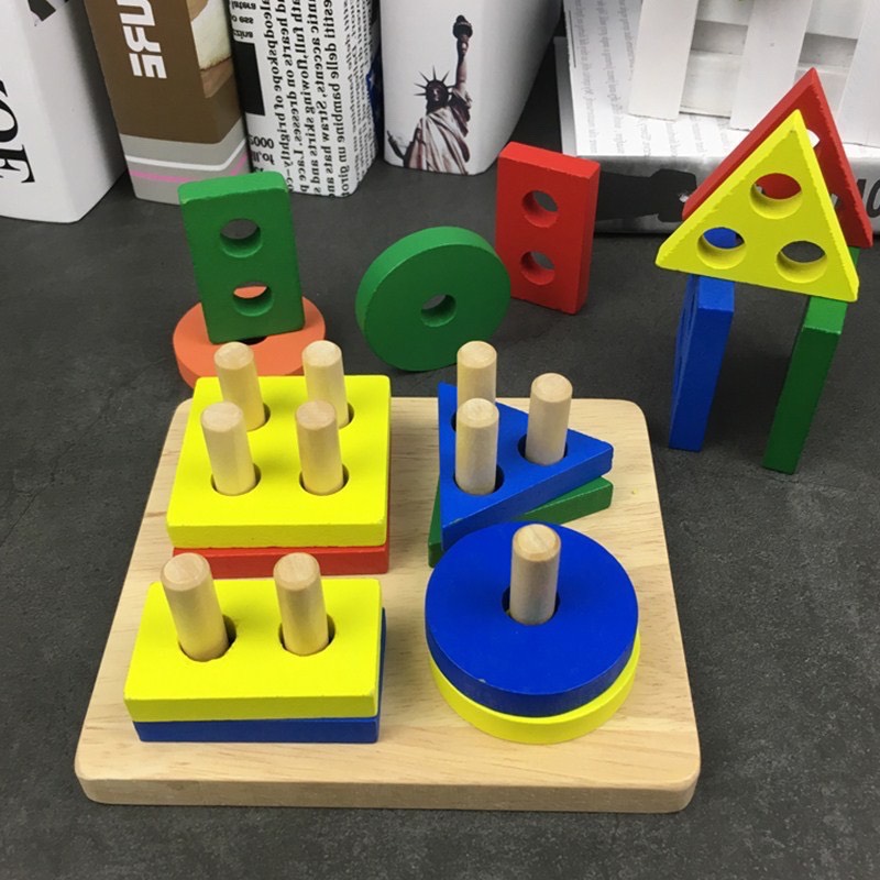 Đồ chơi an toàn thả gỗ học hình khối 4 trụ cho bé