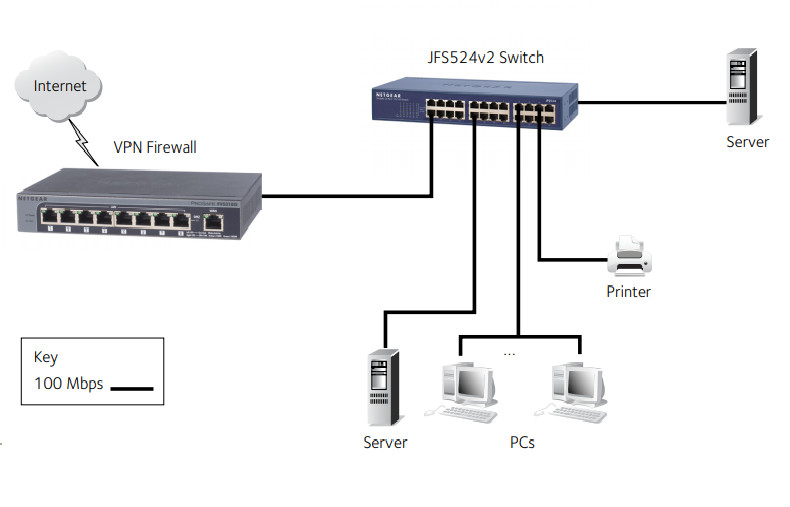 - GHOST Bạn cần nâng cấp hiệu năng hệ thống mạng? NETGEAR giới thiệu một giải pháp hiệu quả, sử dụng JFS524. Unmanaged 10/100 Mbps Fast Ethernet swtich cung cấp kết nối mở rộng cho các hệ thống mạng văn phòng nhỏ vì vậy người dùng không còn phải cạnh tranh băng thông với nhau. Tất cả các tính năng cần thiết bao gồm: tự động nhận tốc độ và chế độ truyền full/half duplex, thông lượng 200 Mbps trên mỗi cổng, tự động nhận kiểu cáp truyền Auto Uplink, nhưng chỉ với một mức giá cạnh tranh mà người dùng không thể bỏ qua. Tiết kiệm 24 cổng có tốc độ và năng lực với giá hợp lý mà không giảm chất lượng-- điều mà bạn có thể mong đợi từ sản phẩm JFS524 của NETGEAR. Khả năng Các cổng switch 10/100 Mbps cung cấp băng thông riêng cho các máy trạm, máy chủ , hoặc các hub, hỗ trợ thông lượng 200 Mbps. Mỗi cổng có khả năng truyền với tốc độ mạng 200 Mbps trong chế độ full-duplex. Cảnh báo Luôn sẵn sàng, JFS524 bắt đầu hoạt động ngay khi bật nguồn mà không yêu cầu cấu hình. Tất cả 24 cổng tự động nhận tốc độ và chế độ truyền full/half duplex, tự động nhận kiểu cáp truyền Auto Uplink. Thiết thực Thiết bị có vở kim loại thuận tiện cho thiết kế để bàn nhỏ gọn cũng như lắp rack. Switch cho phép dễ dàng kết nối tới các thiết bị 10, 100 Mbps bên trong mạng.