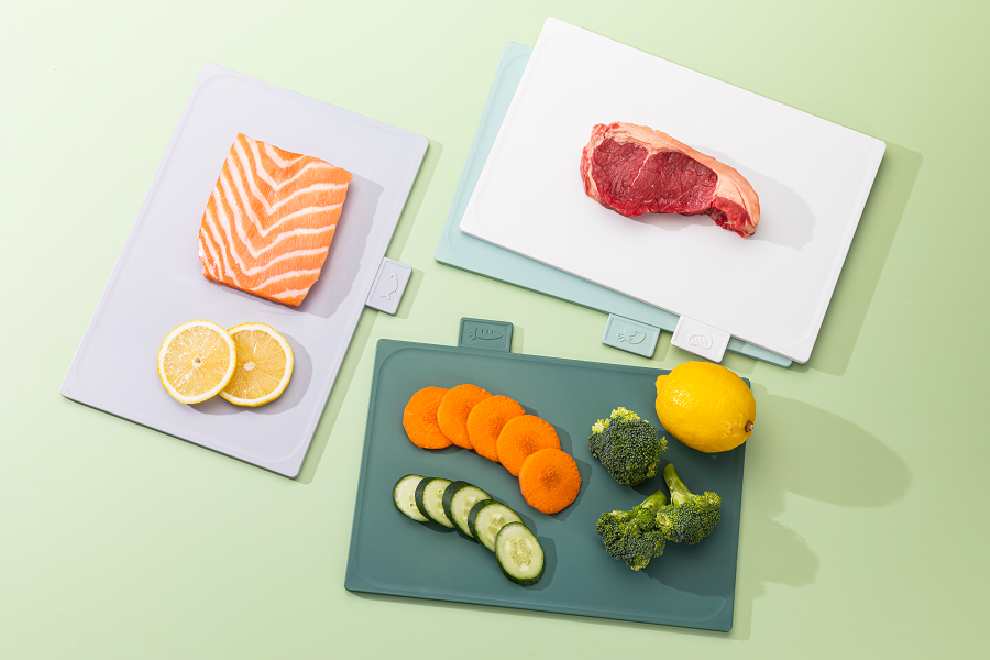 * THÔNG TIN CHI TIẾT SẢN PHẨM - Dòng sản phẩm Folio tiếp tục xu hướng màu xanh lá cây, bốn chiếc thớt có mã màu này đi kèm với một hộp đựng có đường