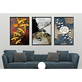 ✨Bộ tranh 3 Bức - Tranh treo tường phòng khách- Tranh 3D Hiện Đại HD 60068 /Gỗ MDF cao cấp phủ kim sa/ Chống ẩm mốc, mối mọt/Bo viền góc tròn