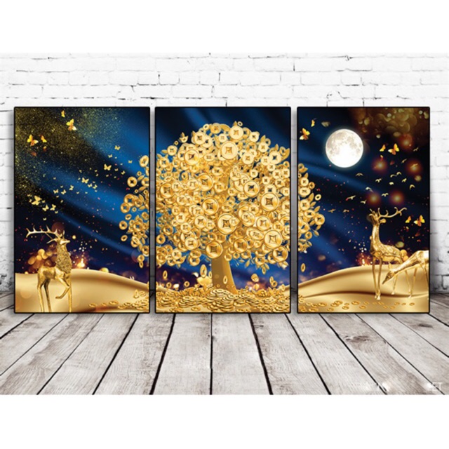 Bộ 3 tranh treo tường phòng khách, phong cách hiện đại tráng gương 5D may mắn đến nhà cho gia chủ ☘️