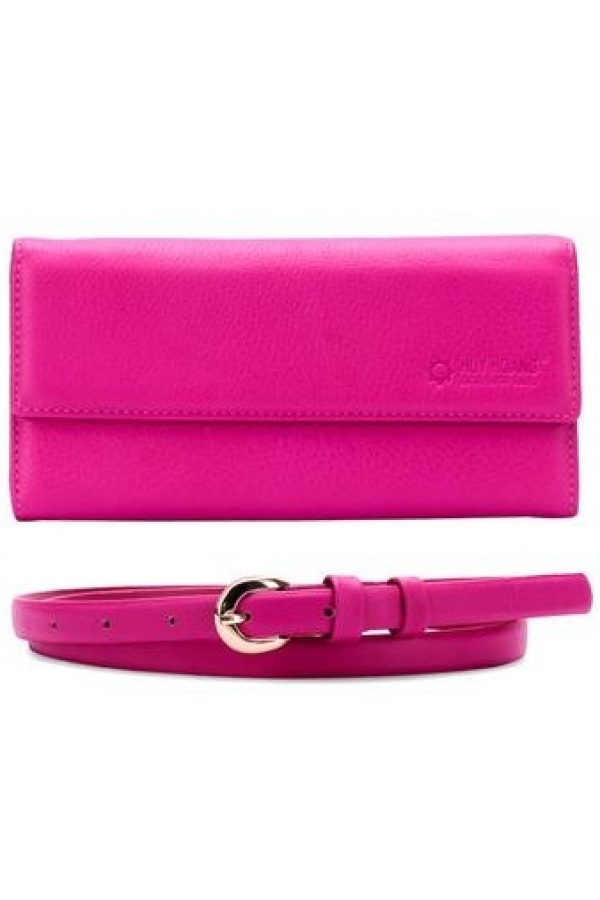 Bộ Ví nữ & Thắt lưng nữ Huy Hoàng da bò màu hồng 3128-5132
