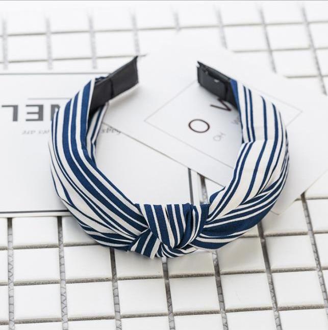 ✨Bờm cài tóc turban nữ bản to kẻ trắng xanh đậm BN25A