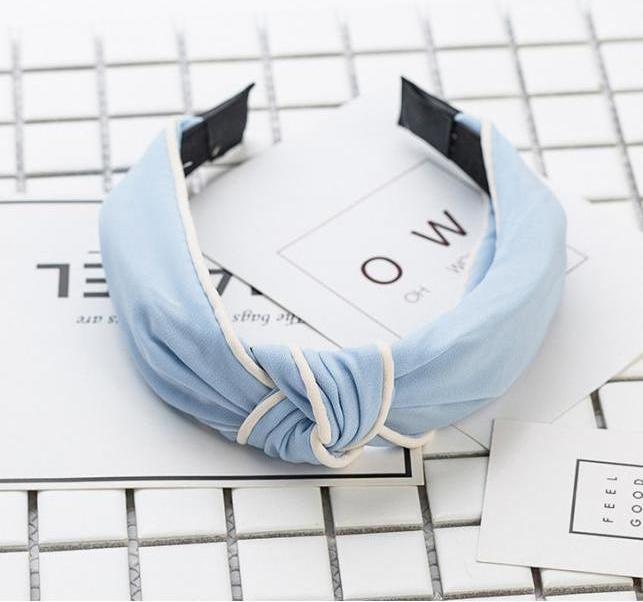 ✨Bờm cài tóc turban nữ BN33D bản to mầu xanh lam nhạt viên trắng