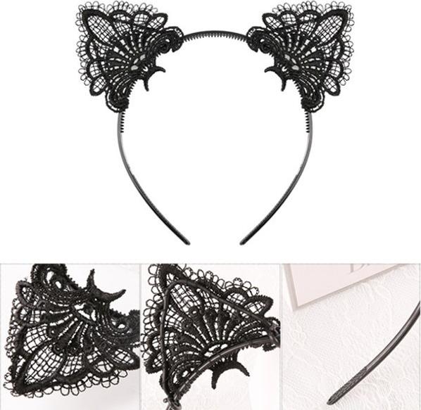 ✨Bờm cài tóc xinh xắn hình mèo vải ren