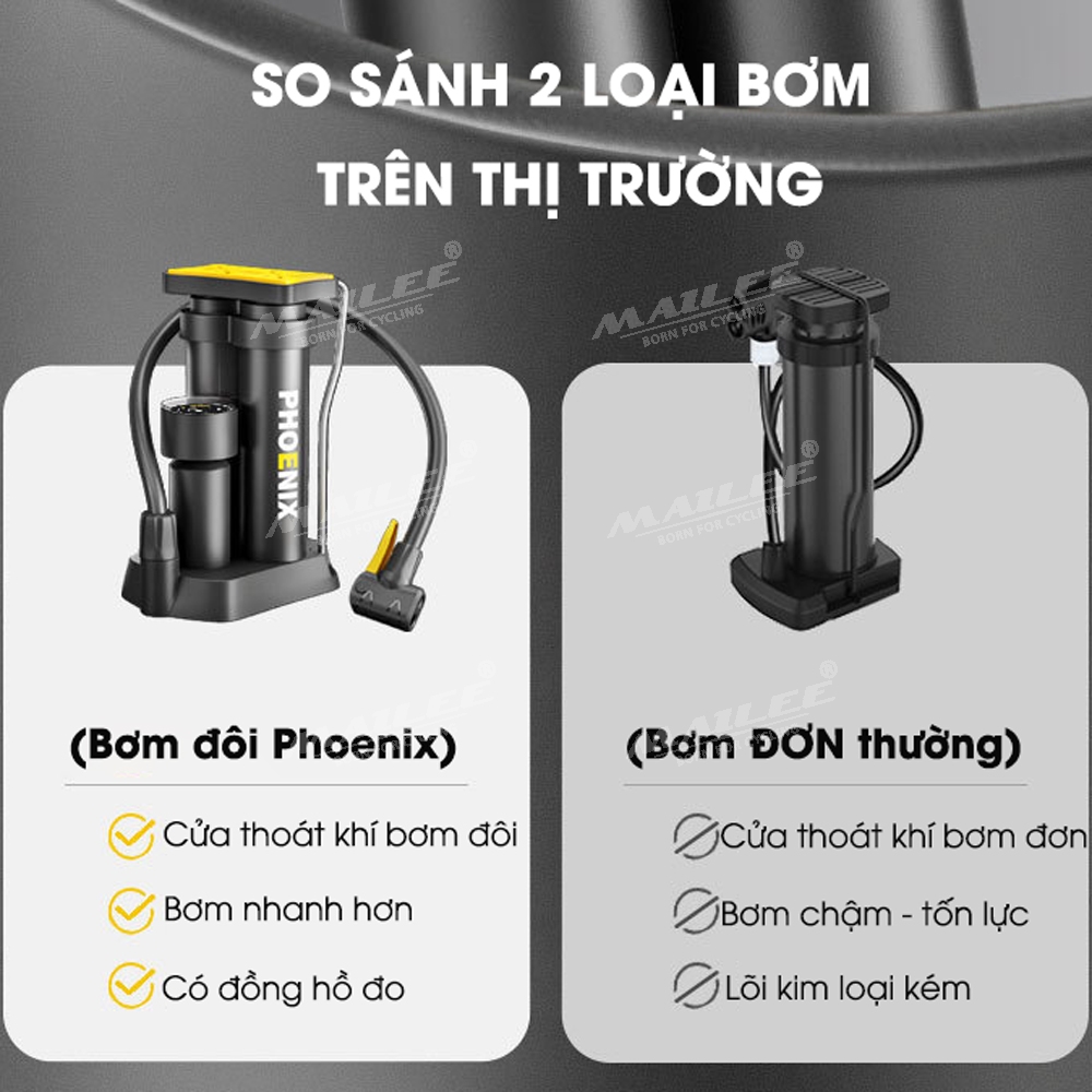 Bơm Chân Mini Di Động Phoenix 9809E cho Xe máy/ xe đạp/ xe ô tô, ống đôi, 170 psi, vỏ nhựa ABS, lõi bơm nhôm, van đa năng 2 lỗ đa dụng - Mai Lee Vui lòng xem video để hiểu tính năng của sản phẩm