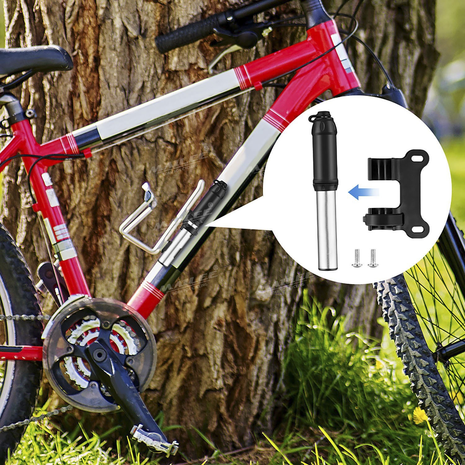 Bơm Xe Đạp Mini 100Psi Kèm Khung Gắn Sườn Xe Nhiều Đầu Bơm Tiện Lợi, Lõi Khung Nhôm Kim Loại Trọng Lượng Nhẹ MaiLee Áp suất cao 100psi với phù hợp với bơm xe