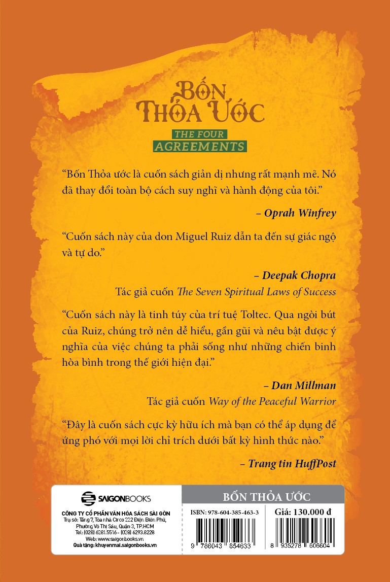 Trong Bốn thỏa ước, don Miguel Ruiz tiết lộ nguồn gốc của niềm tin tự giới hạn bản thân cướp đi niềm vui và tạo ra đau khổ không cần thiết. Dựa trên sự khôn ngoan của Toltec cổ xưa, Bốn thỏa ước đưa ra một quy tắc ứng xử mạnh mẽ có thể nhanh chóng biến cuộc sống của chúng ta sang một trải nghiệm mới về tự do, hạnh phúc thực sự và tình yêu.