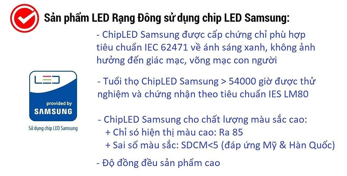 Nguồn sáng: chip LED chất lượng cao có tuổi thọ và hiệu suất sáng cao, chỉ số hoàn màu cao Ra ≥ 80, cho ánh sáng trung thực tự nhiên