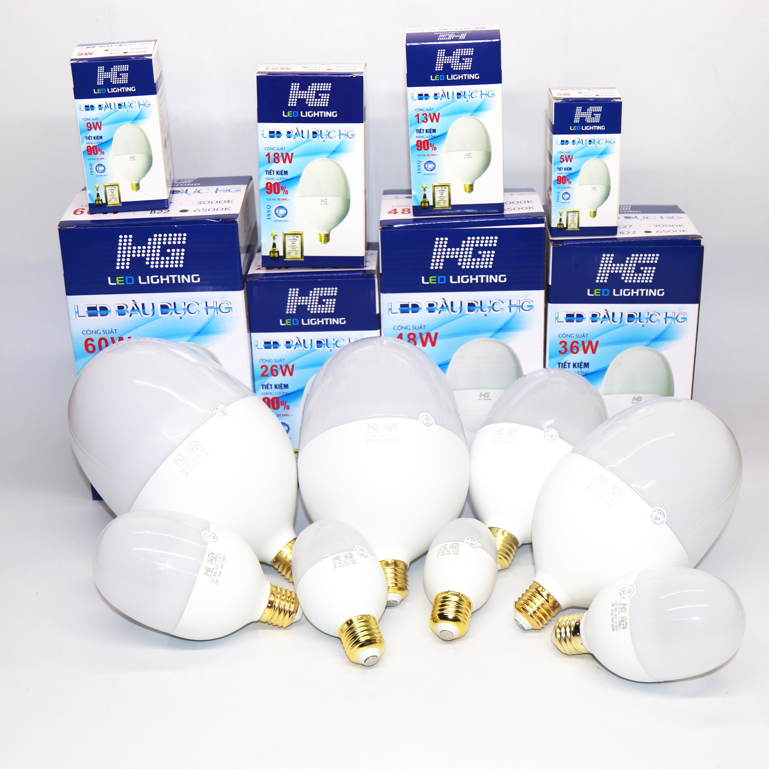Bóng led trụ bầu dục HG 5W, 9W, 13W, 18W, 26W, 36W, 48W, 60W ánh sáng trắng 6500K siêu sáng, siêu bền là loại bóng đèn công suất cao. Bóng đèn led tròn sử dụng bóng siêu sáng cho hiệu suất phát sáng và tuổi thọ cao. Tiết kiệm lên tới 90% điện năng tiêu thụ.