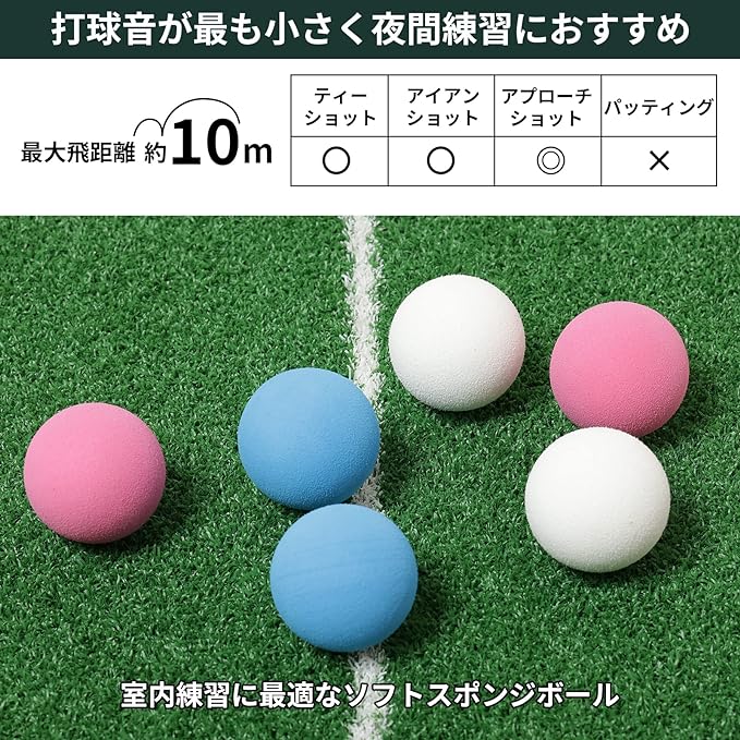 Bóng tập làm bằng bọt biển mềm, lý tưởng cho việc luyện tập tiếp cận trong nhà Âm thanh đánh là nhỏ nhất và lý tưởng để luyện tập trong nhà vào ban đêm. Khoảng
