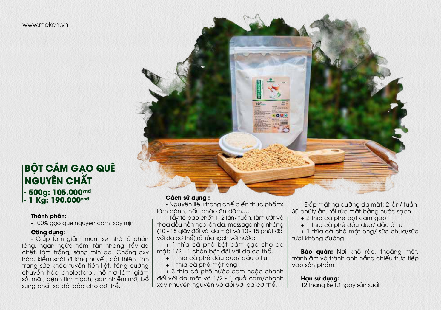 Mua tại Tiktok- Thành phần: 100% gạo quê nguyên cám, xay mịn