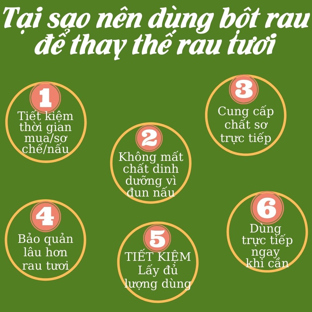 • Người ít có điều kiện nấu ăn ở nhà; Ưu điểm khi sử dụng bột rau củ khi pha chế