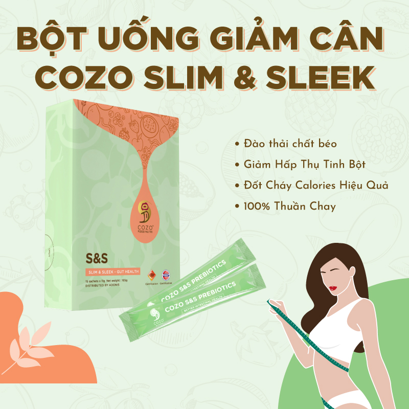 Bột Uống Hỗ Trợ Giảm Cân, Đốt Mỡ, Phân Hủy Chất Béo, Giảm Carbohydrate Cozo Slim & Sleek An Toàn Cho Dạ Dày - Hộp 15 Gói Giải quyết vấn đề đường ruột với Cozo