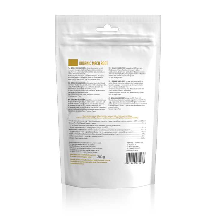 Bột MaCa có tên khoa học là Lepidium meyenii, đôi khi được gọi là nhân sâm Peru. Nó thường được gọi là 'siêu thực phẩm' vì đặc điểm giàu chất dinh dưỡng của nó. MaCa nhiều chất xơ và là nguồn cung cấp protein, canxi, sắt và phốt pho, nó chủ yếu phát triển ở dãy Andes của miền trung Peru, trong điều kiện khắc nghiệt và ở độ cao rất cao