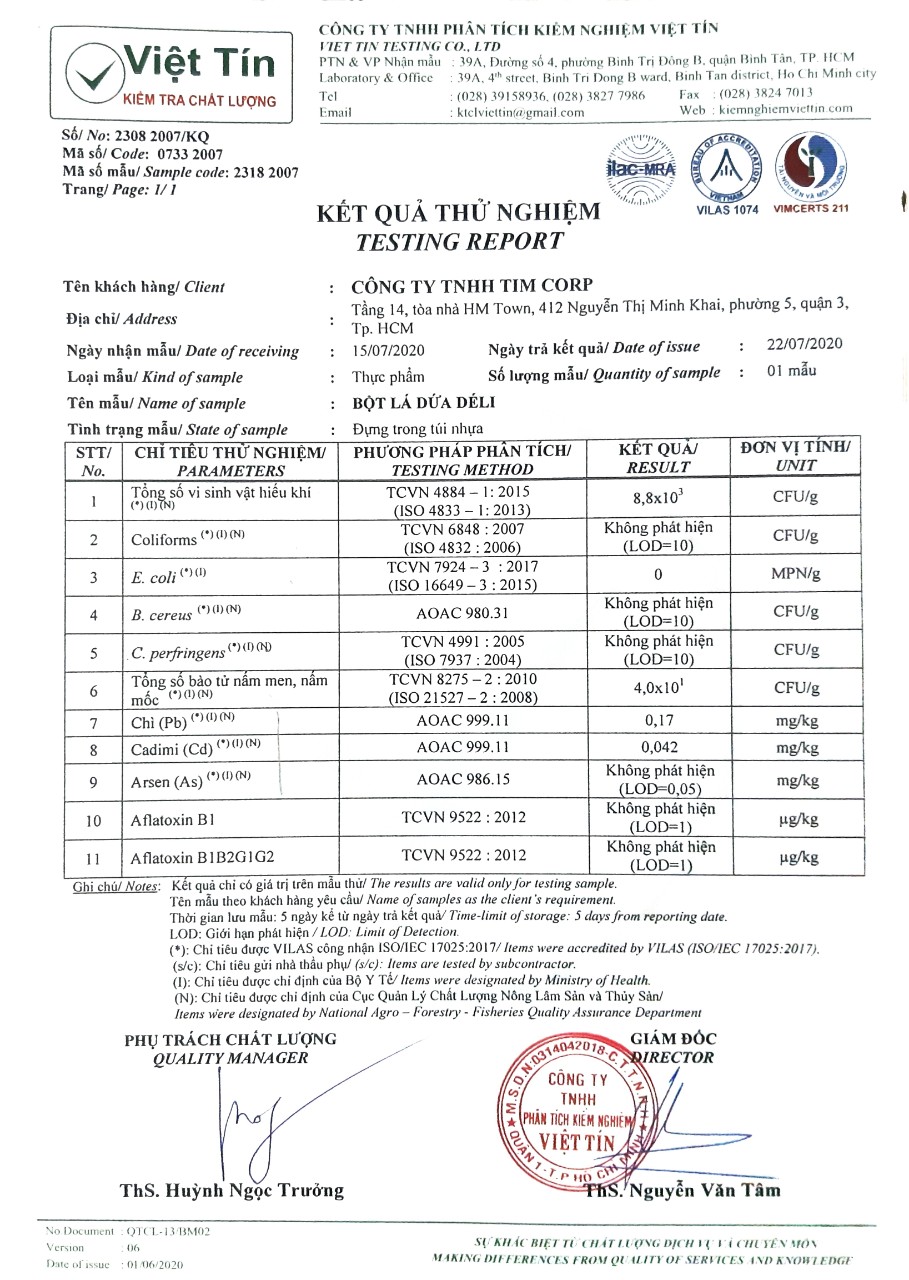 * Tên sản phẩm: Bột Cải Bó Xôi DalaHouse Sản xuất từ 100% cải bó xôi tươi được trồng và thu hoạch tại trang trại organic của Dalahouse tại Lâm Đồng. Công nghệ sấy lạnh