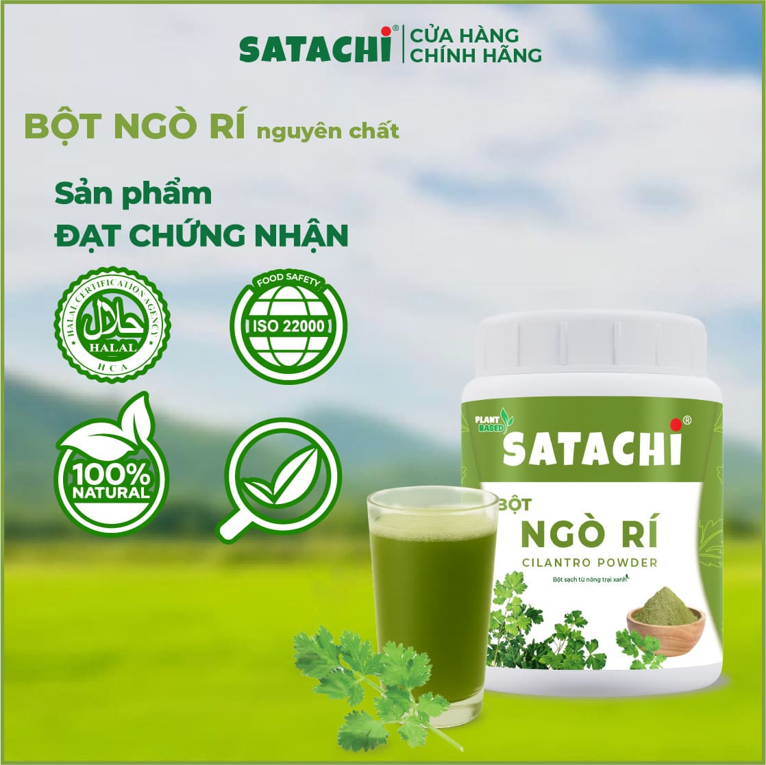 Khách hàng luôn nhận được Sản Phẩm có Ngày Sản Xuất trong vòng 6 tháng tính từ ngày sản xuất. Bột Ngò Rí nguyên ch ất SATACHI là dòng Sản Phẩm Thuần Thực Vật có nguồn dinh dưỡng dồi dào. Bột Ngò Rí nguyên ch ất SATACHI đạt: