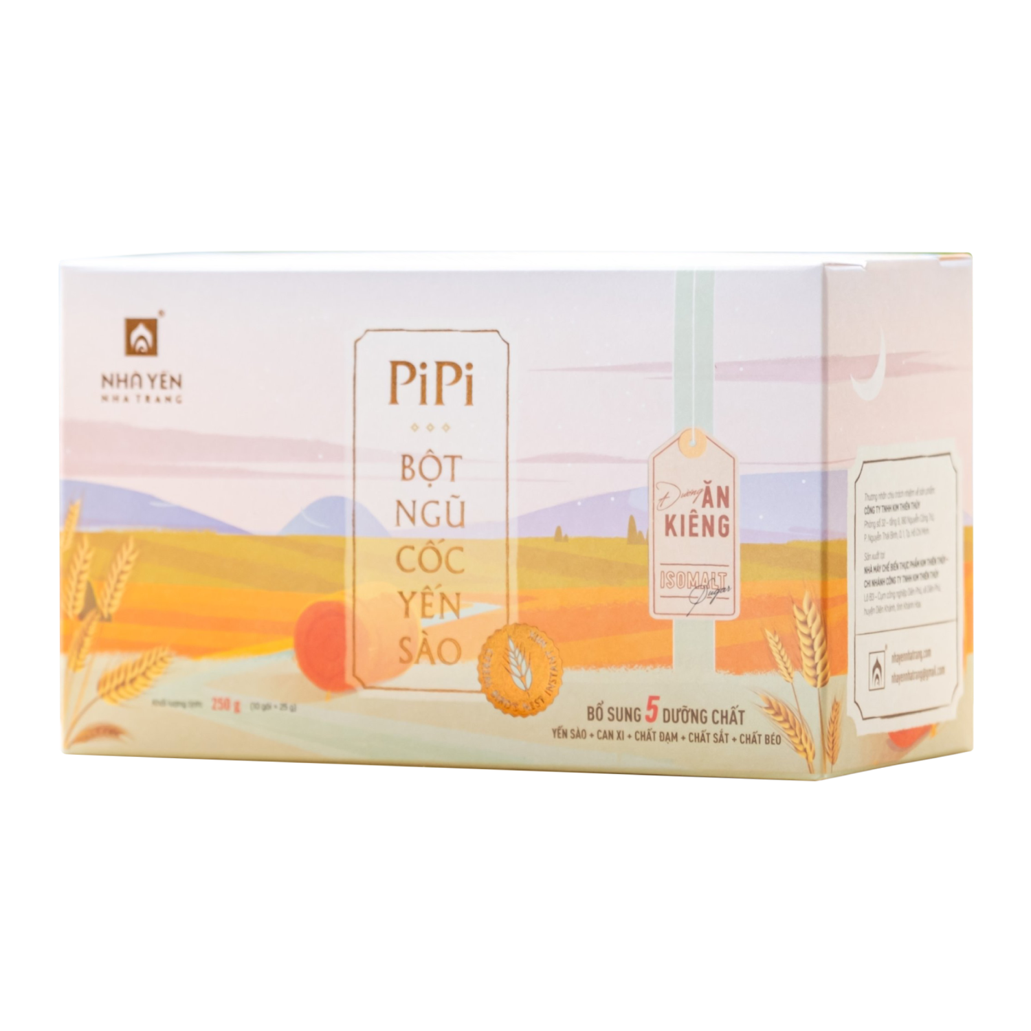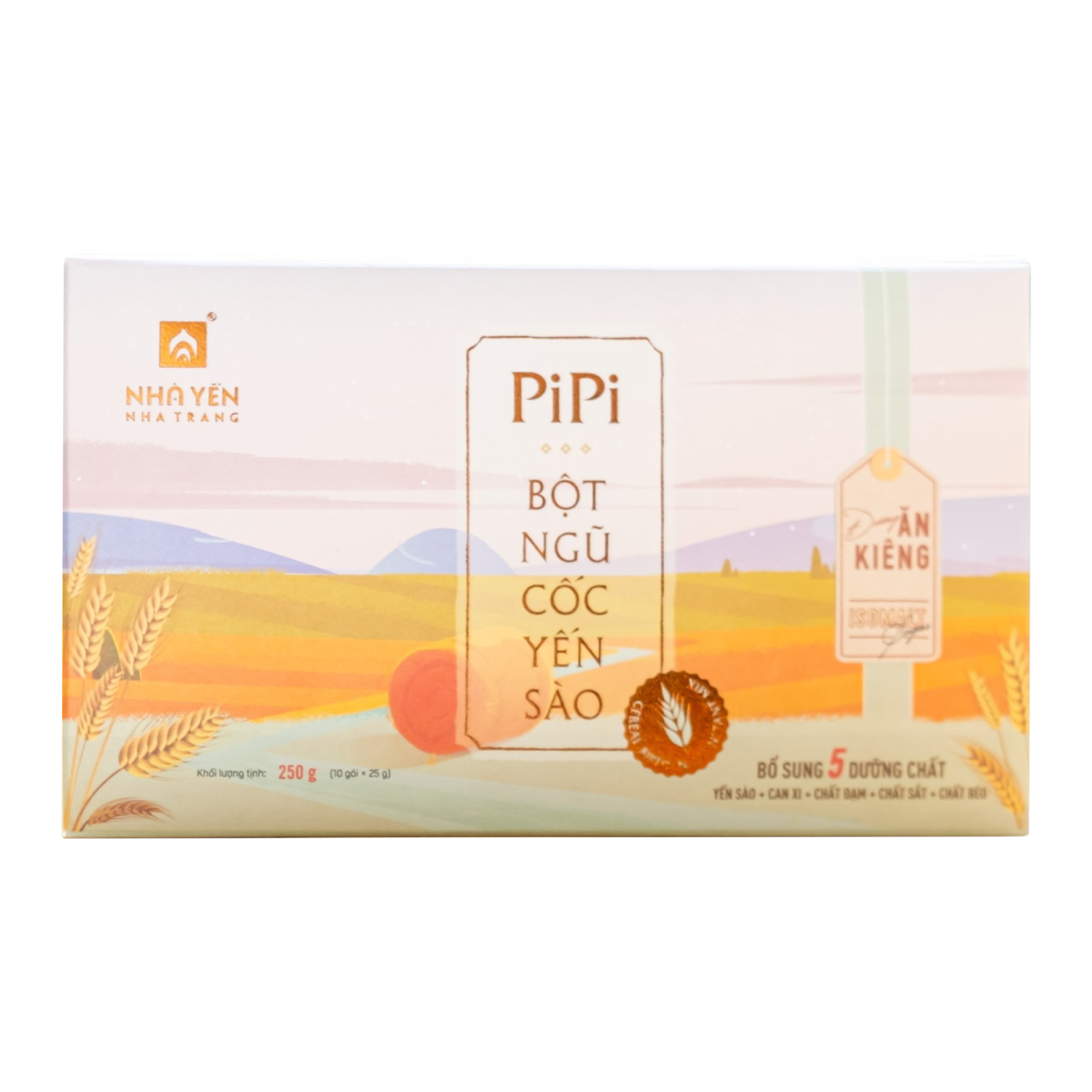 ✨Bột Ngũ Cốc Yến Sào PiPi - Nhà Yến Nha Trang - Hộp 10 Gói - Loại Ít Đường - Bột Ngũ Cốc Ăn Kiêng Giảm Cân - Bột Ngũ Cốc Dinh Dưỡng - Hàng Chính Hãng