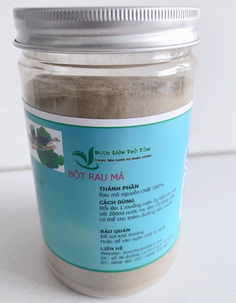 - Thứ hai là cách sử dụng bột rau má để làm mặt nạ. Các bạn có thể cho 3 muỗng bột vào chén rồi thêm vào một ít nước ấm sao cho vừa tạo hỗn hợp sền sệt, sánh mịn là có thể thoa lên da mặt. Kế đến thư giãn trong 30 phút rồi rửa sạch. Ngoài ra các bạn có thể thay thế nước ấm bằng sữa chua, sữa tươi, mật ong,… Tùy vào nhu cầu sử dụng của bạn cũng như có thể dùng những hỗn hợp này cho cả body để có được làn da trắng hồng, ngừa mụn và mờ thâm hiệu quả. Qua 2 cách dùng bột rau má đơn giản, chúng tôi tin nếu kiên trì sử dụng thì các bạn sẽ có được một sức khỏe tốt và một làn da mịn màng, như ý THÔNG TIN SẢN PHẨM