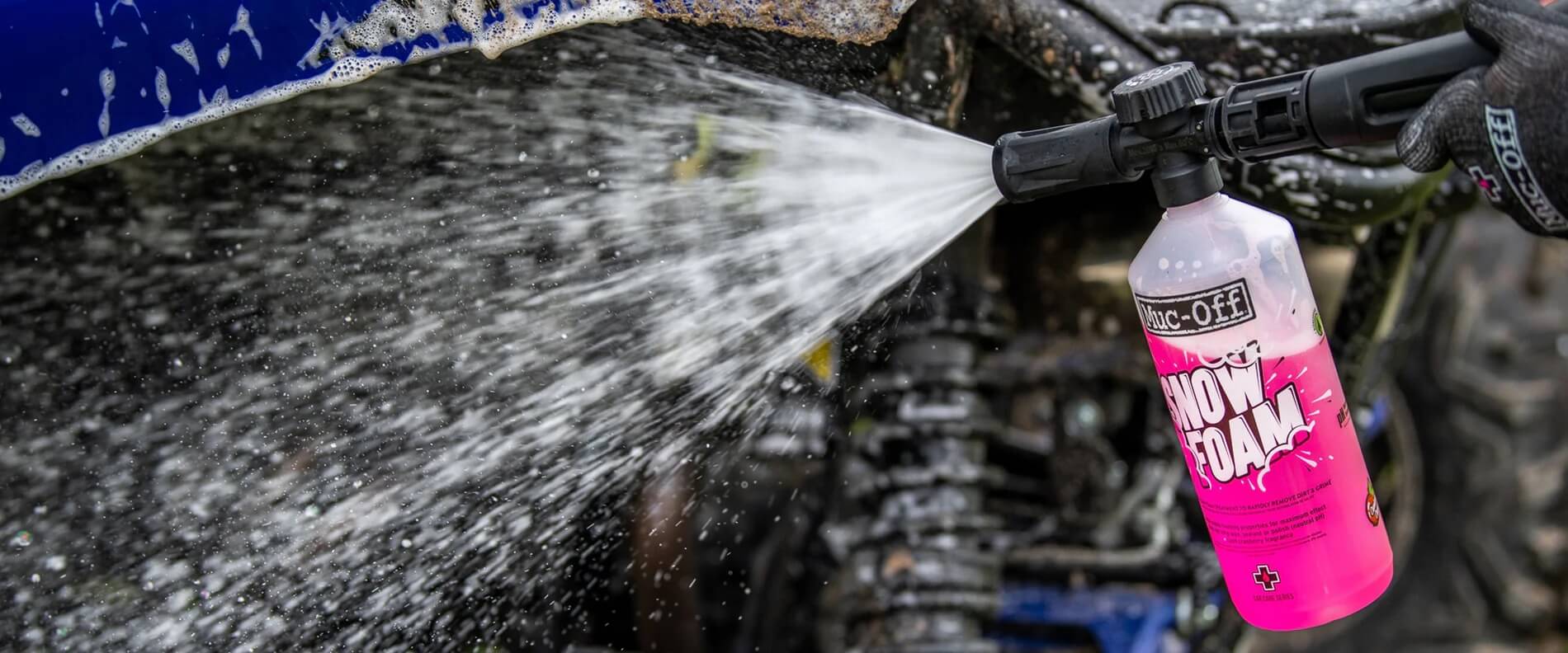Chỉ cần xịt Bọt Tuyết lên xe của bạn bằng cách sử dụng đầu phun bọt cho máy phun rửa áp lực, sau đó để ngâm vài phút trước khi chà bằng mút hoặc bàn chải mềm và rửa sạch bằng nước.