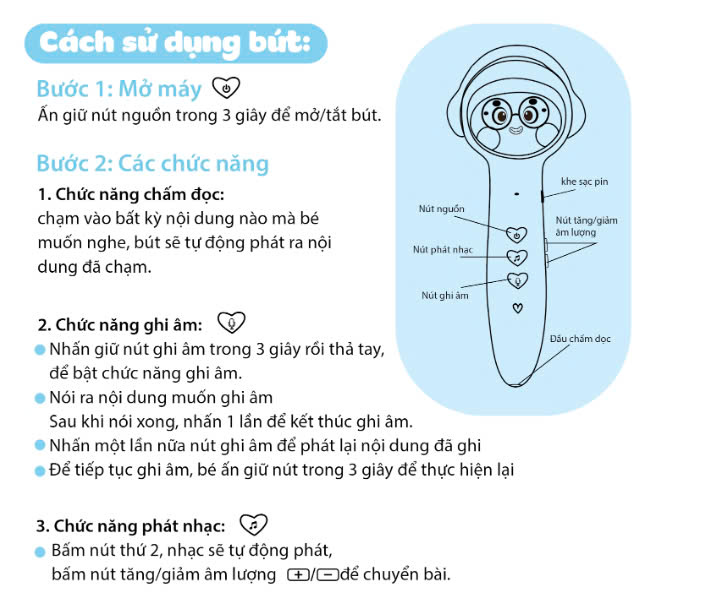 1. Thông tin sản phẩm: Sản phẩm của Đồ Chơi BK - Tên sản phẩm: Máy Đọc Thẻ SOng ngữ Việt - Anh 224 Từ Vựng Không Có Sóng Điện Từ, Kèm Dây Sạc Pin.