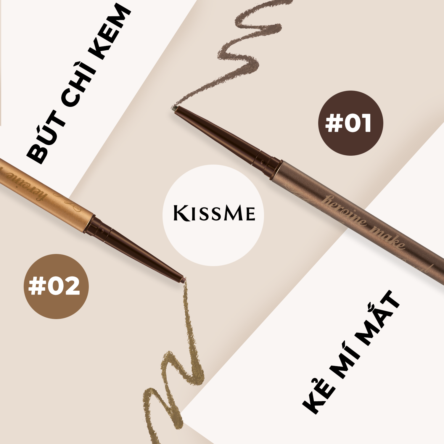 ✨Bút Chì Kem Kẻ Mí Mắt Chống Trôi Nước Lõi Mịn Kissme Heroine Make Cream 02 Màu (1.6 G)