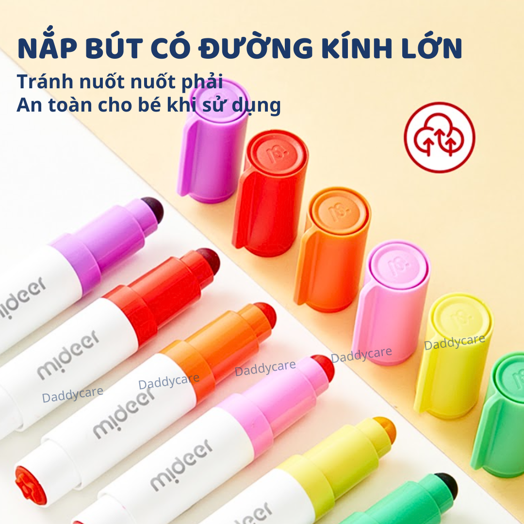 - Nắp bút đường kính to dễ thấy, an toàn tránh bé nuốt khi sử dụng