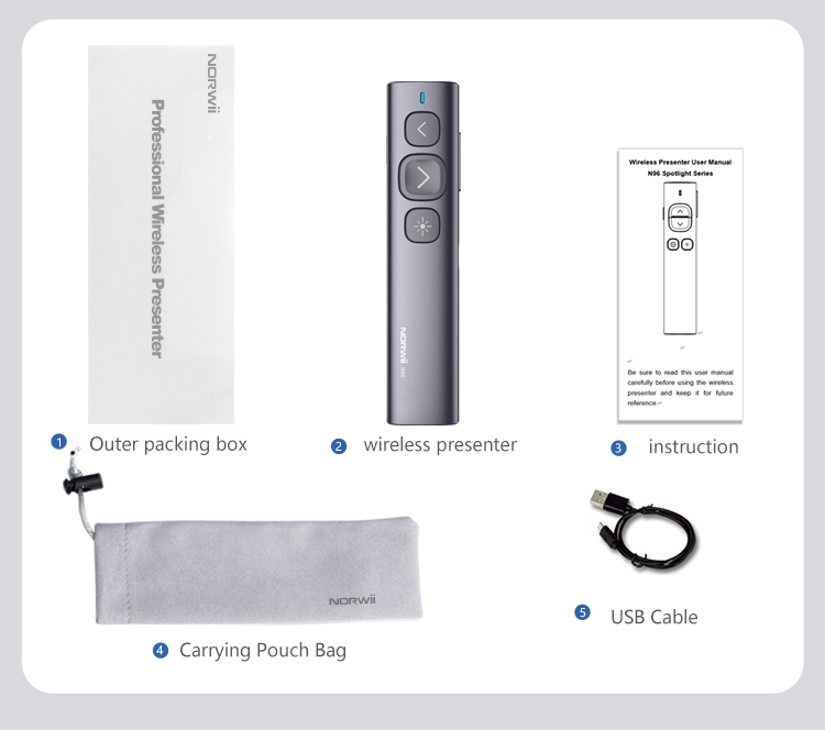 Bút trình chiếu cho màn hình LED Norwii N96S với Laser màu xanh là lựa chọn hoàn hảo cho các bài thuyết trình, giảng dạy và hội nghị, với thiết kế tinh tế và tính