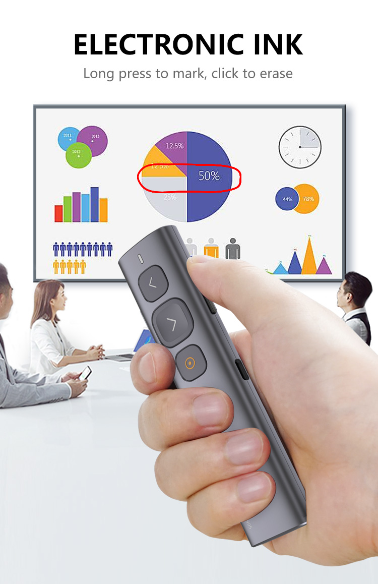Laser xanh: Người dẫn chương trình không dây với tia laser màu xanh lá cây hiển thị tốt hơn trên nhiều nền khác nhau, ánh sáng xanh lục tươi sáng giúp bạn chỉ rõ mọi thứ