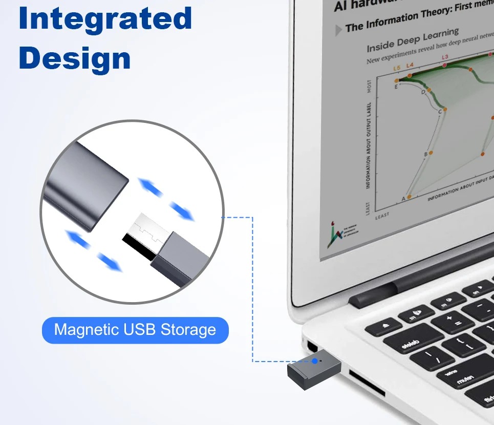 Phạm vi siêu dài: Công nghệ RF 2.4G, phạm vi không dây lên tới 15 mét. Omni-Direction: Điều hướng PC từ mọi hướng không dây. Tiết kiệm năng lượng: Tự động chờ, ngủ sâu và cảnh báo đèn