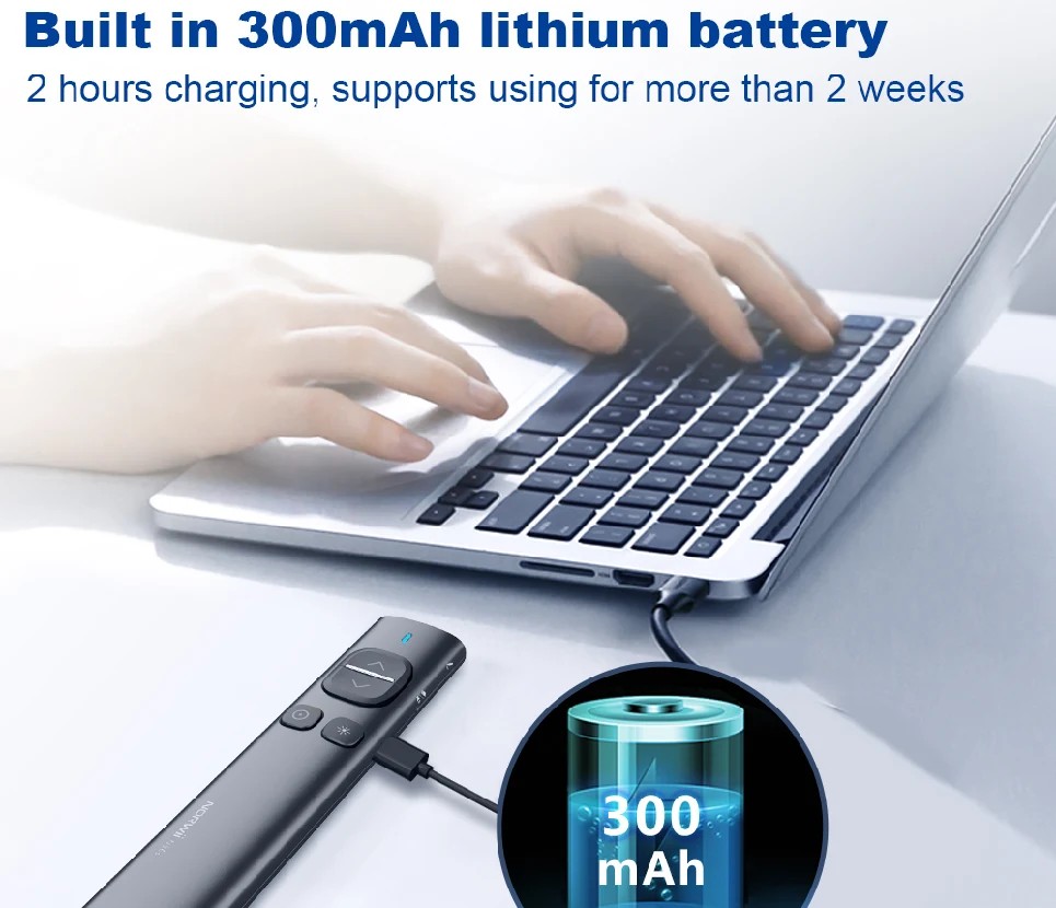 Laser xanh: Người dẫn chương trình không dây với tia laser màu xanh lá cây hiển thị tốt hơn trên nhiều nền khác nhau, ánh sáng xanh lục tươi sáng giúp bạn chỉ rõ mọi thứ