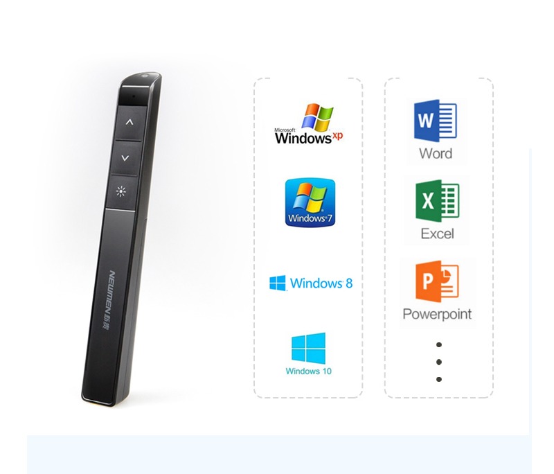 1. Tính năng: sử dụng trình chiếu, thuyết trình, word, PowerP 2. Led: màu đỏ 3. Sử dụng: Pin AAA 4. Khoảng cách chiếu Led: 100-200M 5. Khoảng cách điều khiển: sóng 2.4Ghz lên đến