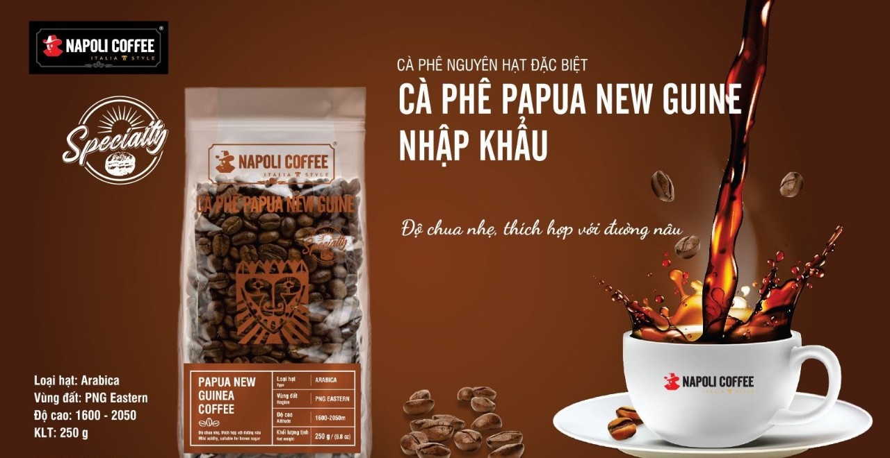 Tinh khiết từ hạt - Tinh ngon từ người Cà phê hạt Specialty 100% Cà phê hạt Arabica Papua New Guinea (PNG) Hương vị: Tinh tế, đậm đà, sặc sỡ. PNG mang hương vị của