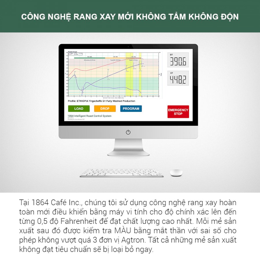 Tất cả sản phẩm Thương hiệu 1864 CAFÉ đều sử dụng hạt xanh nguyên liệu chất lượng cao Hạng 1, cỡ hạt trên sàng 18/64 in (theo TCVN 4193: 2014), Sản phẩm thành phẩm được bảo quản trong bao bì hợp kim Aluminium tối thiểu phải trên 5 lớp, đạt chuẩn ATVSTP có van 1 chiều chống oxy hóa và Zip lock tiện lợi.