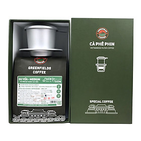 CÀ PHÊ QUÀ TẶNG GU THƠM GREENFIELDS COFFEE Thành phần 100% cà phê nguyên chất, không hương liệu hóa học, không chất phụ gia và các loại bột, đậu khác. Đặc biệt Gu thơm có