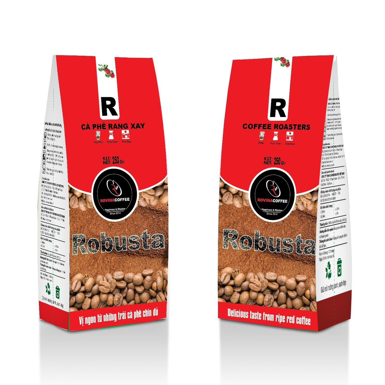 ✨Cà Phê Robusta Việt Nam – Pha Máy – Gói 250Gr ( Nguyên Hạt) Hương Vị Cân Bằng Mùi Thơm Nhẹ, Vị Êm Thương Hiệu Rovina Coffee