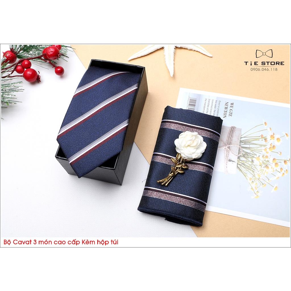 Cavat nam bản 8cm lót silk cao cấp nguyên hộp kèm khăn và khuy măng sét Giangpkc Qtp Sản phẩm cao cấp nguyên hộp quà tặng bản 8cm thích hợp cho trung niên - công