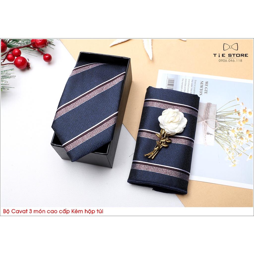 Cavat nam bản 8cm lót silk cao cấp nguyên hộp kèm khăn và khuy măng sét Giangpkc Qtp Sản phẩm cao cấp nguyên hộp quà tặng bản 8cm thích hợp cho trung niên - công