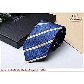 ✨Cà Vạt Hàn Quốc bản trung 7cm Cao cấp kèm hộp - Màu xanh kẻ vàng