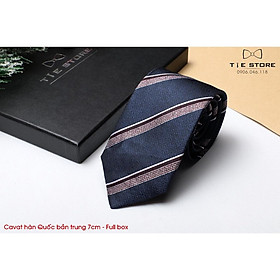 ✨Cà Vạt Hàn Quốc bản trung 7cm Cao cấp kèm hộp - Xanh họa tiết kẻ