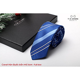 ✨Cà Vạt Nam Bản nhỏ 6cm xanh coban kẻ - Cavat Hàn Quốc Cao Cấp Full box