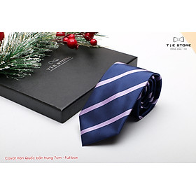 ✨Cà Vạt Nam Bản Trung 7Cm Xanh kẻ - Cavat Hàn Quốc Cao Cấp Full Box