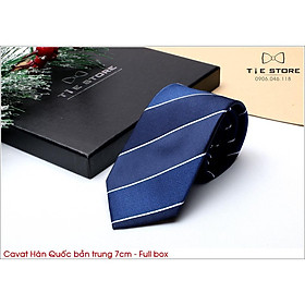 ✨Cà Vạt Nam Bản Trung 7Cm xanh kẻ chéo - Cavat Hàn Quốc Cao Cấp Full box